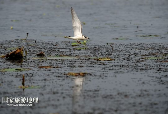 8月3日,一只須浮鷗在那木斯萊湖上。