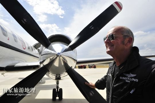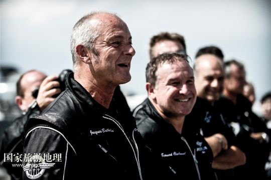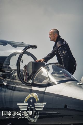 8月14日,在新疆克拉瑪依機(jī)場(chǎng),百年靈噴氣機(jī)隊(duì)隊(duì)長(zhǎng)雅克走下飛機(jī)。
