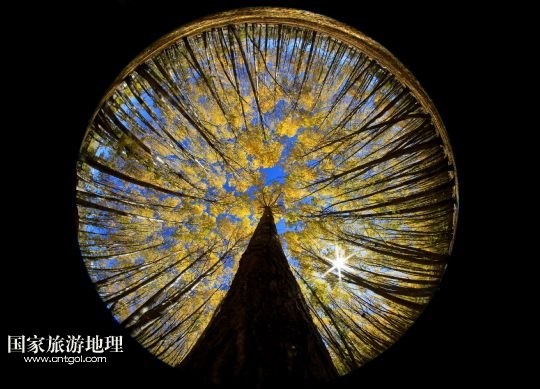 這是使用魚眼鏡頭拍攝的西藏拉薩市林周縣境內的秋色(10月12日攝)。