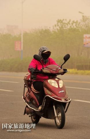 國家旅游地理 寧夏中衛(wèi)4月24日訊 4月24日,在寧夏回族自治區(qū)中衛(wèi)市,一位市民在沙塵天氣中騎行。當日,寧夏回族自治區(qū)中北部地區(qū)遭遇強沙塵天氣,寧夏氣象臺于當日7時40分發(fā)布沙塵暴黃色預警信號:預計未來12小時內全區(qū)大部有5-6級偏北風,陣風7-8級,伴有揚沙或浮塵天氣,銀川、石嘴山、吳忠、中衛(wèi)四市的部分地區(qū)可能出現能見度小于1000米的沙塵暴天氣。 /新華社記者 彭昭之 攝