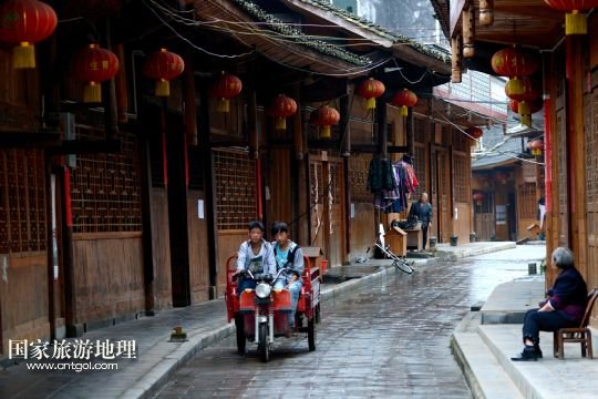 國(guó)家旅游地理 湖北恩施5月25日訊 5月24日拍攝的板寮村老街。在湖北西部山區(qū)恩施土家族苗族自治州宣恩縣深山里,一方難得的平川上坐落著“川鹽濟(jì)湘”“巴鹽古道”中的一個(gè)驛站——板寮村。村里有500多戶(hù)人家,200多年前這里作為古道驛站,騾馬蕭蕭,商賈云集;如今這里是全國(guó)“美麗鄉(xiāng)村”創(chuàng)建試點(diǎn)村,吊腳樓民居整齊排列,醫(yī)院、學(xué)校等一應(yīng)俱全,一座“袖珍小城”讓農(nóng)民們盡享“就地城鎮(zhèn)化”帶來(lái)的舒適生活。