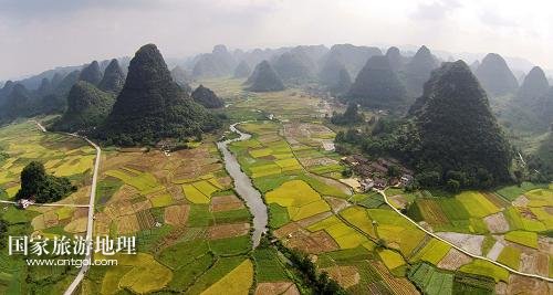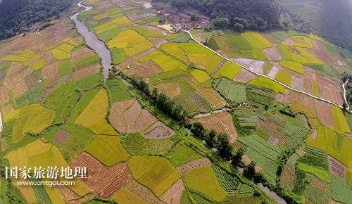 國家旅游地理 廣西柳州8月21日訊 8月20日在廣西柳州市融安縣泗頂鎮(zhèn)泗頂村航拍的田園風光。“立秋”過后,地處桂北山區(qū)的廣西柳州市融安縣進入稻谷收獲的季節(jié),金黃的稻田與原生態(tài)的山水風光構(gòu)成一幅美麗的豐收圖。新華社發(fā)(譚凱興 攝)