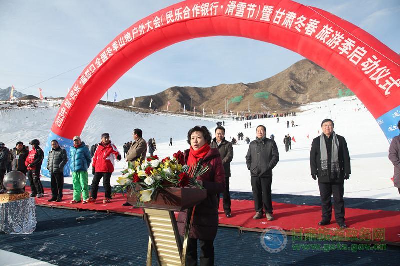 何偉局長用“祁連歡歌迎盛會,冰雪旅游聚英豪”來稱贊本次活動。她在致辭中指出,在張掖扁都口隆重舉行“中國·民樂扁都口全國冬季山地戶外大會暨甘肅省冬春旅游季活動”啟動儀式,這是我省體育、旅游兩個產(chǎn)業(yè)融合發(fā)展的重要舉措,也是我省淡季旅游市場啟動的重要標(biāo)志。冰雪旅游是品位的追求,戶外運動是勇者的選擇。甘肅旅游資源十分豐富,冬季旅游資源獨具特色。為了給激情飛揚的旅游愛好者獻(xiàn)上豐盛的冬季旅游盛宴,全省各地都在積極謀動。特別是張掖市舉全市之力,精心策劃,全力推動,不僅在大景區(qū)建設(shè)等整體旅游工作上走在全省前列,而且在淡季旅游開發(fā)上搞得紅紅火火,做出了示范。在張掖啟動全省“冬春旅游季”活動,就是為了借張掖冬季旅游的火熱勢頭,帶動全省淡季旅游持續(xù)升溫。希望全省旅游系統(tǒng)以本次活動為契機,整合資源,相互借勢,形成合力,共同做熱、做大甘肅冬季旅游市場,使甘肅豐富多彩的冬春旅游資源轉(zhuǎn)化為旅游發(fā)展新的亮點、經(jīng)濟(jì)增長的新優(yōu)勢。