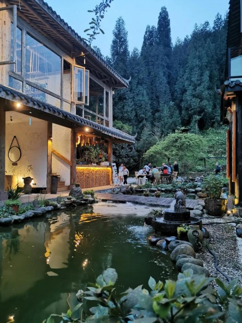 六七山居位于眉山洪雅瓦屋山鎮(zhèn)共和村,是一家以精品酒店為體、生活方式為本、創(chuàng)意設計為介的國內(nèi)高端新銳文化、文旅、文創(chuàng)于一體的綜合民宿。整座民宿依山傍水,拾光,邀月,山舍,微醉,民宿房間的名字都充滿詩情畫意。山景房依山而建,山青蟲鳴;湖景房臨湖圍欄,波光粼粼。民宿內(nèi)的山景房和湖景房都可以在享筑免費預約入住。民宿內(nèi)還有特色的餐飲和茶點,在湖邊泡一杯清茶,談天說地,舒適愜意。